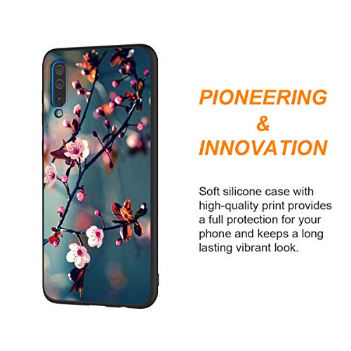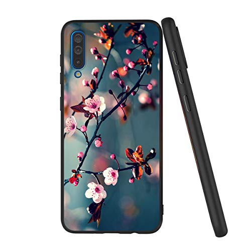 Pnakqil Samsung Galaxy A50 Custodia, Cover Silicone Nero con Disegni 3D Pattern Ultra Slim TPU Morbido Antiurto Bumper Case Protettiva per Samsung Galaxy A50, Fiore di Pesco
