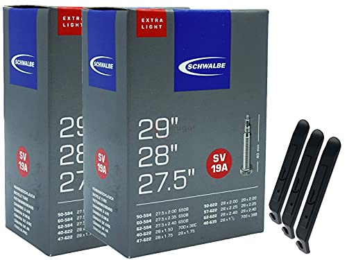 Il set include: 2 camere d'aria Schwalbe da 28 pollici Sclaverand 40-622/62-622 SV19A (Extra Light) + 3 pneugo! Leva per pneumatici