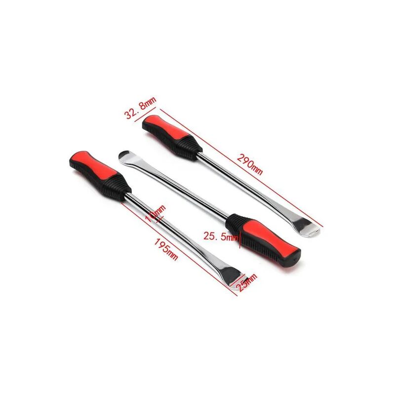 Panoramica del prodotto:: Specifiche: Colore: nero + rosso + argento Materiale: acciaio, plastica Dimensioni: ca. 29 cm / 11,4 Caratteristiche: 1. Realizzato in acciaio temprato resistente alle alte temperature e alla ruggine 2. L'impugnatura in plastica si adatta alla tua mano, facilitando il cambio degli pneumatici. 3 . Include una pratica custodia per tenere gli attrezzi organizzati. 4.Perfetto per il cambio delle gomme di motociclette/biciclette. Il pacchetto include: 3 strumenti leva pneumatici Precauzioni: 1.Il colore degli articoli reali potrebbe differire leggermente dall'aspetto delle immagini a causa di diversi schermi di computer, grazie per la tua comprensione. 2. Nessuna istruzione inclusa. L'installazione professionale è altamente raccomandata!