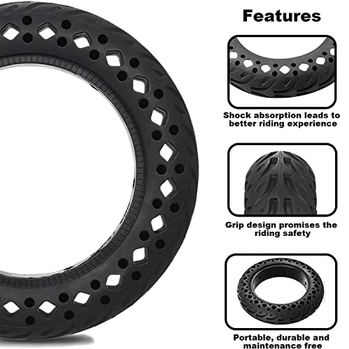 Eccellenti prestazioni: questo pneumatico completo migliorato, a prova di esplosione e antiforatura risolve il problema degli urti dei tradizionali pneumatici pieni ed è realizzato in gomma di alta qualità, che rende questo pneumatico da 8,5 pollici una migliore elasticità. Il design della texture è più resistente all'usura e non percepisce evidenti irregolarità su strade irregolari, rendendo la guida più confortevole.