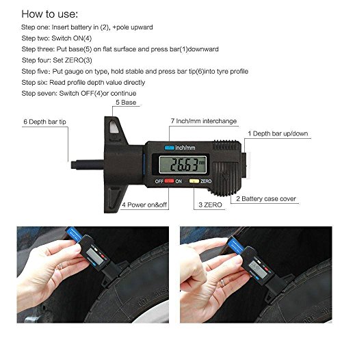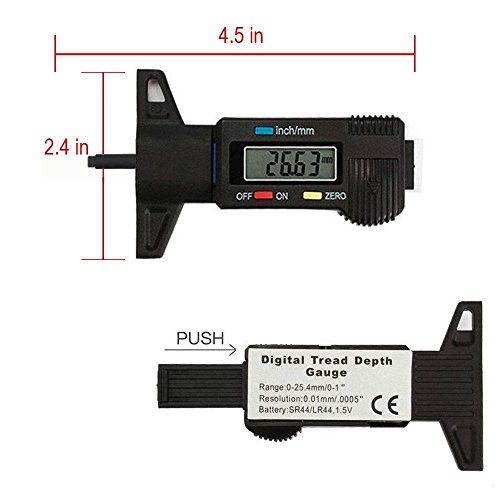 Pneumatico profondimetro digitale, Kobwa 0 - 25.4 mm ampio display LCD pollici/mm regolabile profondità del battistrada strumento di misurazione da moto auto furgone pneumatici
