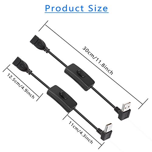 PNGKNYOCN Cavo corto USB con interruttore on/off, confezione da 2 cavi da 1 ft con angolo di alto e verso il basso da USB A 2.0 maschio a femmina per interruttore dati (su e giù 0,3 m)