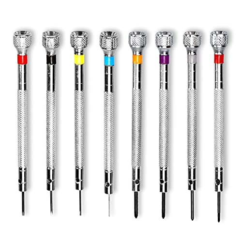 PNOOFR 8 Pezzi Cacciaviti Orologiaio,Giraviti Strumenti,Cacciaviti Di Precisione,Mini Cacciaviti a Lama Piatta Per Riparazione Di Occhiali Orologi Gioielli e Riparazione Elettronica
