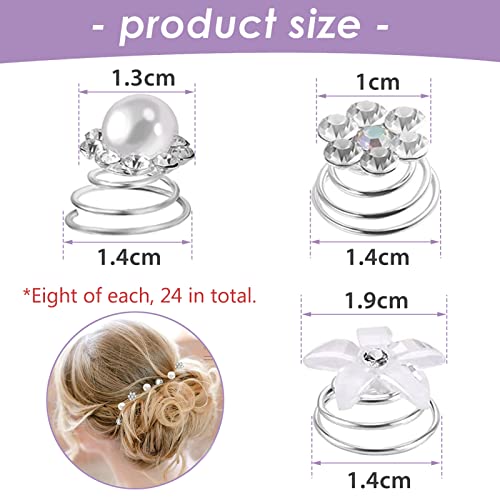 PNOOFR 24 Pezzi Fermagli per Capelli a Spirale con Cristalli e Perla Spirali Sposa Forcine Capelli Forcine Sposa Fermagli Accessori Capelli Sposa 3 Stile Accessori Capelli Sposa Cerimonia