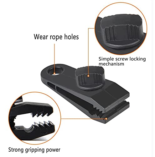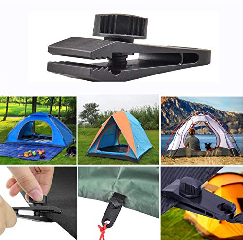 【Design Eccellente】☛ la Clip è Progettata con un Design a Bocca di Coccodrillo, Che ha una Presa Forte. Il Design Della Fibbia a Vite può Stringere il Telo al Massimo Senza Danneggiarlo. C'è un Foro Sull'Altro Lato Della Clip per Attaccare una Corda di Fissaggio in Metallo o un Lucchetto.