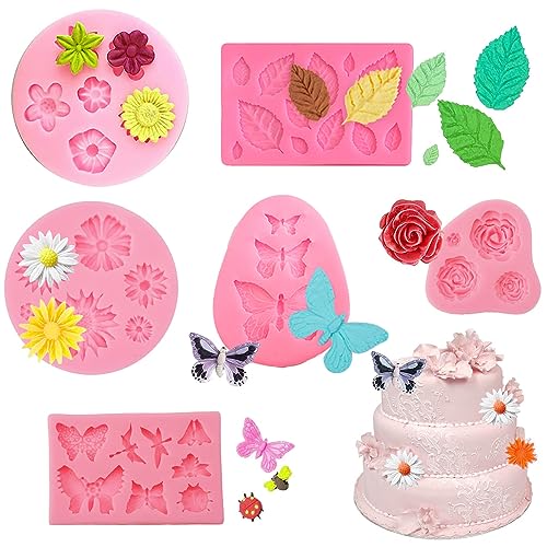 Design versatile: Il nostro set di 6 stampi per torta fondente comprende varie forme, come rose, foglie, farfalle, margherite e libellule. Questi stampi possono essere utilizzati per creare splendide decorazioni per torte, pane, mousse, gelatine, cioccolatini, cubetti di ghiaccio, budini, saponi fatti a mano e artigianato in argilla.