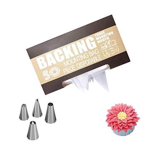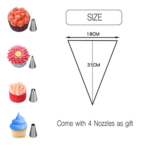 Sac à Poche USA e Getta 30,5 cm sac a Poche, 50 Pezzi Extra Spessa per Torta Dessert Decorazione con 4 beccucci in Acciaio Come Regalo