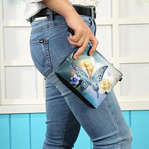 Pochette Donna Tracolla Portafoglio DIY Diamond Painting Pochette Borsa a Tracolla Piccola con Catena Clutch in Pelle PU con Nappe Portamonete Portacellulare (Farfalla Blu e Fiore)
