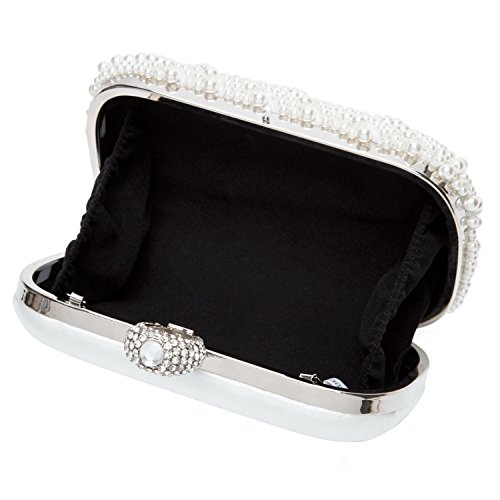 Pochette Elegante Donna Pochette da Cerimonia Perla e Cristallo Borsetta da Sera Borsetta da Matrimonio con Catena per Nozze Festa Partito, Bianco