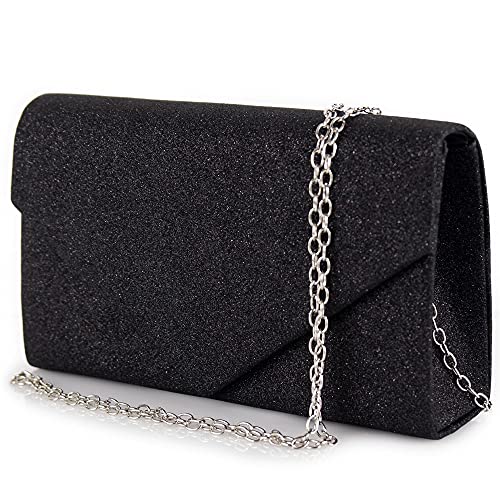 Pochette nera glitter donna elegante da cerimonia borsa piccola gioiello clutch brillantini borsetta a mano black da sera ragazza cena brillantinata Tessuto glitterato Nero