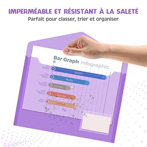 【Keep Clean & Safe】 Questo pacchetto di 12 portafogli in plastica A4 ti offre un modo semplice per archiviare, organizzare e trasportare file e documenti mantenendo al sicuro e protetti. Ogni cartella è trasparente e disponibile in 6 colori diversi.