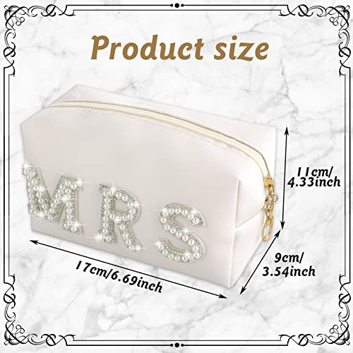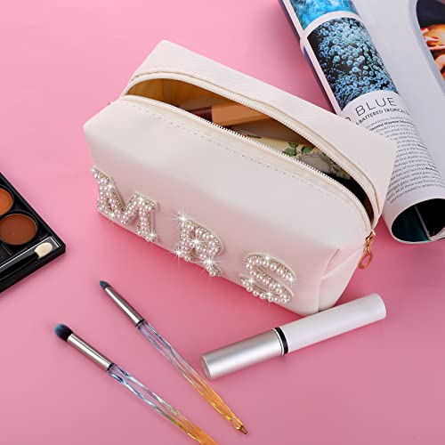 Pochette per Trucchi Donna Borsa Cosmetica in Pelle PU con Strass Bianco Perla Alfabeto Piccola Borsa per Trucco Impermeabile Borsa Cosmetica con Cerniera Portatile Accessori da Viaggio