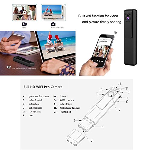 Pocket Mini DV 3in1 MiniTelecamera da Taschino Body Worn Camera Registrazione Audio Video Full HD Visione Notturna Infrarossi Dittafono Fotocamera x Forze dell'Ordine Security Giornalisti Studenti