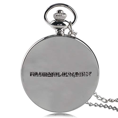 ZMKW Pocket Retro Silver Quartz Pocket Watch Uomo Moda Giapponese Anime Fullmetal Alchemist Collana Orologi Kid Gift, Catena 30cm