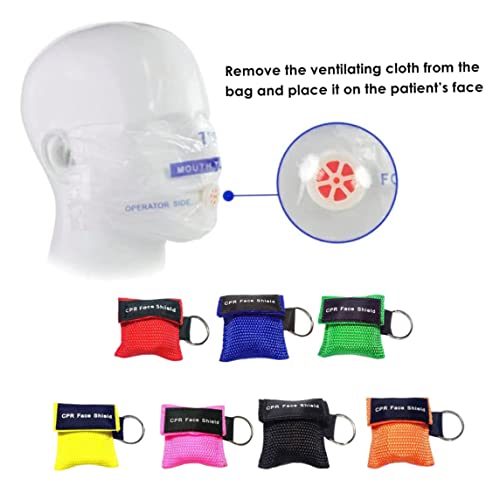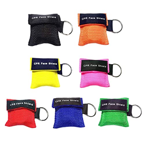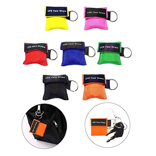 Pocket Shield Face CPR, cronometro con maschera portachiavi anello, portachiavi per il viso di emergenza pronto soccorso barriera respiratoria per un primo soccorso o allenamento AED 7pcs