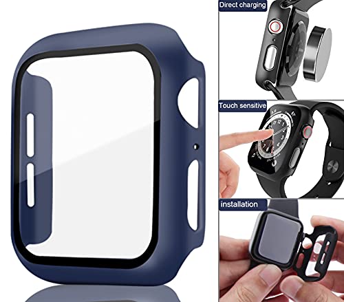 Pocoukate [2 Pezzi] Cover Apple Watch Series 3/Serie 2/Series 1 42mm con Vetro Temperato, Custodia Rigida HD Copertura Completa Schermo Protezione Apple Watch 1 2 3 42mm (42mm/Blu Navy)