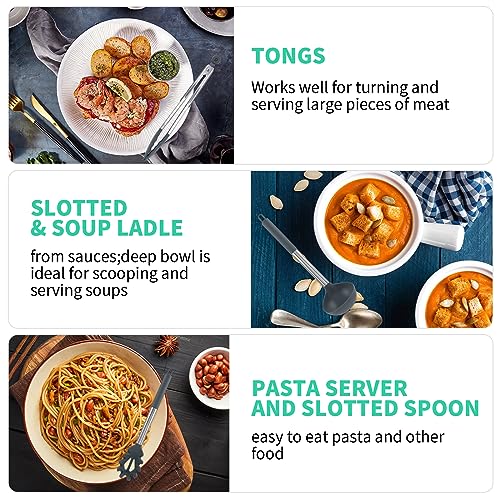 【Qualità Premium】 Realizzato con ottimi manici in acciaio inossidabile e silicone alimentare che non reagisce con cibi o bevande, il silicone morbido non graffierà le pentole antiaderenti, prolungando la vita dei tuoi utensili da cucina, il silicone si adatta comodamente