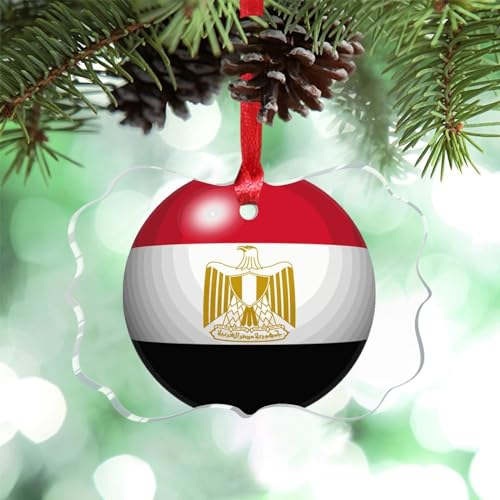 PODbyyou Bandiera dell'Egitto Decorazioni per albero di Natale Falso 3D Palla Paese Città Souvenir Ornamenti di Natale personalizzati 2023 Decorazione natalizia Acrilica Regali per Famiglia Amico