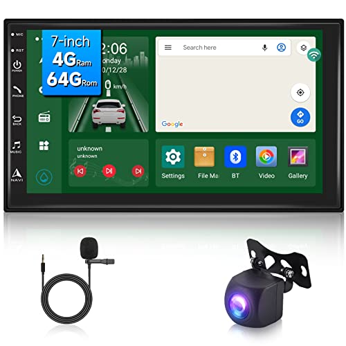 Podofo Autoradio Android 2 Din 4 RAM+64 ROM SIM Card Senza Fili Carplay Android Auto con Schermo Schermo Tattile 7'' FM/AM/RDS Bluetooth 5.1 OBD2 DSP 8UI Mirror Link AHD Telecamera Posteriore