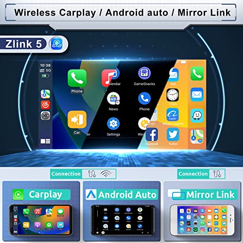 【Autoradio Android 12 con Carplay Senza Fili】Sistema operativo Android 12, con 4G di RAM e 64G di ROM, per liberarsi della memoria ridotta, è possibile scaricare molte app. Inserire Zlink, collegare l'autoradio con il telefono tramite Bluetooth o USB per realizzare carplay/android auto, e supportare anche il mirror link cablato per iOS e Android.
