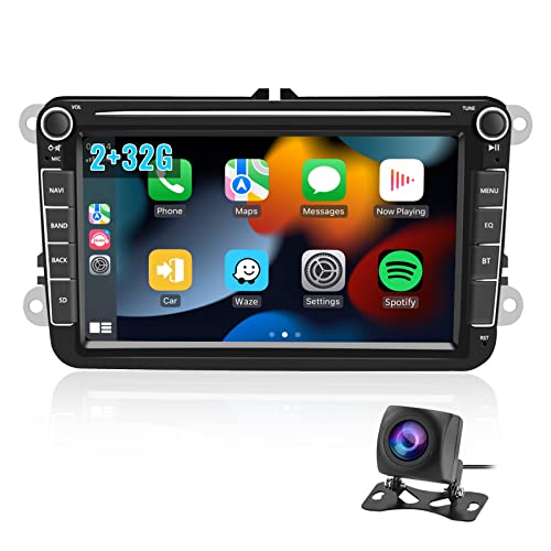 Podofo Autoradio Android 11 per VW Skoda Passat Golf Tiguan Polo Carplay Senza Fili Android Auto 2 Din 2+32G con Schermo 8'' con AHD Rear View Camera FM/RDS Bluetooth con Cavo 36/40/52 pin WIFI/GPS