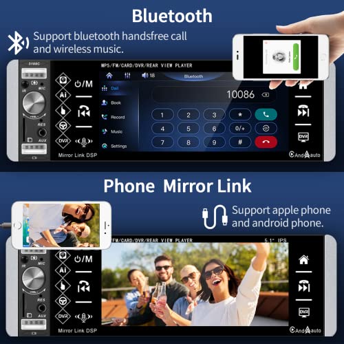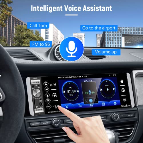 Podofo 1 Din Autoradio con Carplay Android Auto Schermo tattile da 5" Radio FM Bluetooth Controllo vocale Doppia USB AUX SD TF Singolo Din Lettore per auto+Fotocamera+Telecomando+Microfono