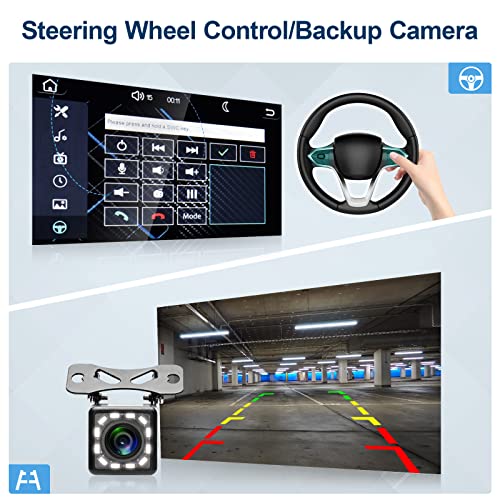 【Telecamera posteriore a 12 LED e funzione SWC】Questa autoradio è dotata di una telecamera posteriore a 12 LED, che passa automaticamente allo schermo posteriore quando è in retromarcia. Funzione di controllo del volante in acciaio: consente di effettuare e riagganciare le chiamate, regolare il volume e cambiare canzone.