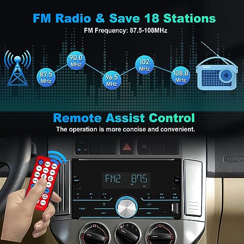 [Vivavoce Bluetooth e Telecomando]: Autoradio Bluetooth, potenza 60 W x 4, supporta dispositivi Android e iOS, che possono fornire una connessione stabile e una comunicazione fluida. Con il telecomando puoi regolare volume/brano/stazione, AUX/BT/Tune per rendere la guida più sicura.