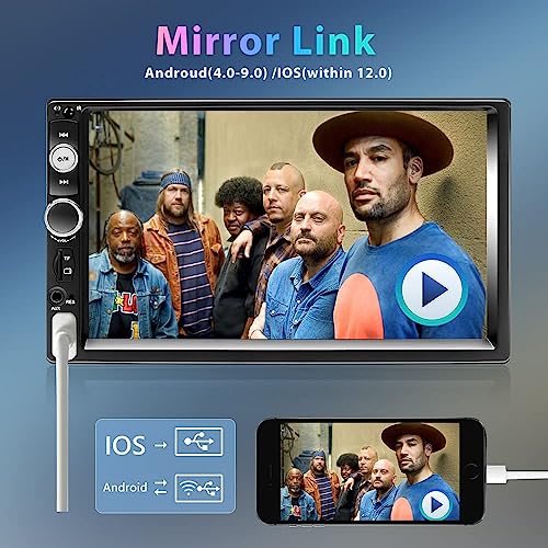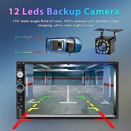 Podofo 2 Din Autoradio con Vivavoce Bluetooth 7 Pollici Stereo Auto Bluetooth con Schermo con Collegamento a Specchio/FM/AUX/con Controllo al Volante + 12 Luci Telecamera di Backup
