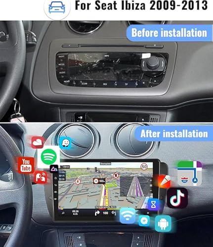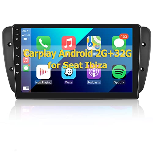 Podofo Carplay Autoradio per Seat Ibiza 2009-2013,Android 2G+32G Hifi,9" Touchscreen Android Auto GPS Wifi Bluetooth FM RDS Radio USB Auto-Stereo-Player per Seat Ibiza +Canbus