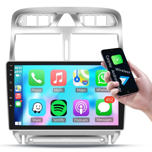 Podofo Carplay Autoradio per Peugeot 307 2002-2013,Android 2G+32G Hifi,9" Touchscreen Android Auto GPS Wifi Bluetooth FM RDS Radio USB per Peugeot307 Auto-Stereo-Player