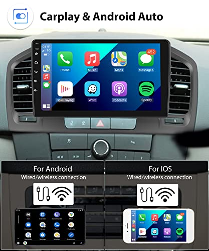 Podofo Carplay Senza Fili Autoradio per Opel Insignia 2008-2013/Buick Regal 2008-2013,Android 2G+32G Hifi Android Auto,9" Touchscreen GPS Wifi Bluetooth FM RDS USB Auto Radio