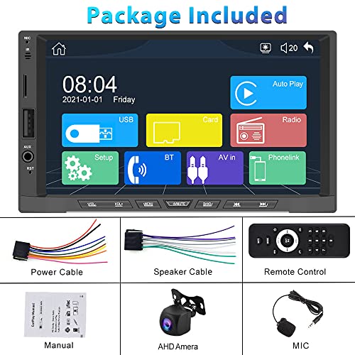 [Bluetooth e Microfono] - L'audio per auto 2 Din può utilizzare il Bluetooth per connettersi a telefoni cellulari, chiamate in vivavoce, riproduzione di musica e caricamento automatico della rubrica. Un microfono esterno, equivalente a un piccolo microfono, raccoglie e amplifica il suono.