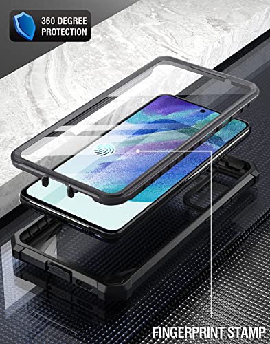 Poetic Guardian Series - Custodia protettiva per Samsung Galaxy S21 FE 5G, con protezione schermo integrata e identificazione delle impronte digitali, colore: Nero