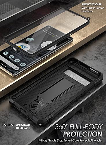 Poetic Revolution Series - Custodia per Google Pixel 7 Pro 5G, con protezione dello schermo integrata, con identificazione delle impronte digitali, custodia protettiva antiurto con cavalletto, Nero