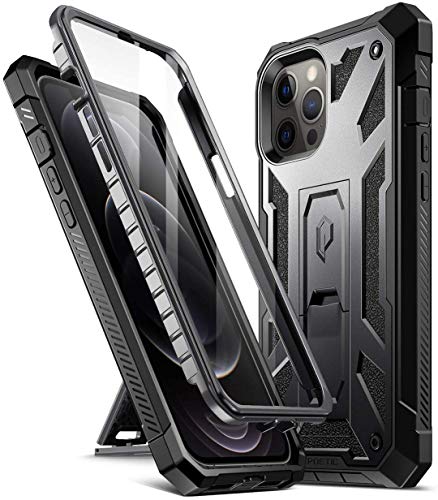 Poetic Spartan Series per iPhone 12 Pro Max 6.7", custodia rigida a doppio strato metallico color accento con struttura in pelle premium antiurto con cavalletto in metallo