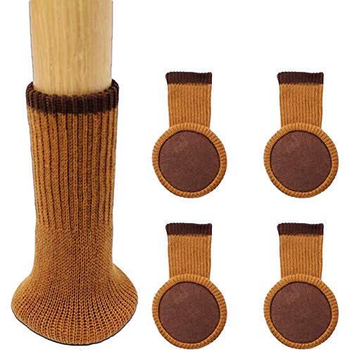 POFET - Set di 24 paia di calzini per gambe della sedia con cuscinetti in feltro, elastici lavorati a maglia, per mobili in legno spesso, per proteggere le gambe dei mobili, antiscivolo (marrone)