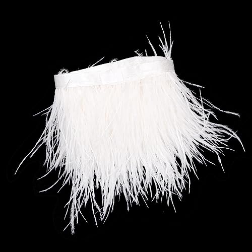 POFET 2 iardi di piume di struzzo naturali morbide con frangia, nastro per cucire abiti, decorazione, artigianato, abbigliamento, matrimonio, decorazione, cucito, artigianato, 13-15 cm (bianco)