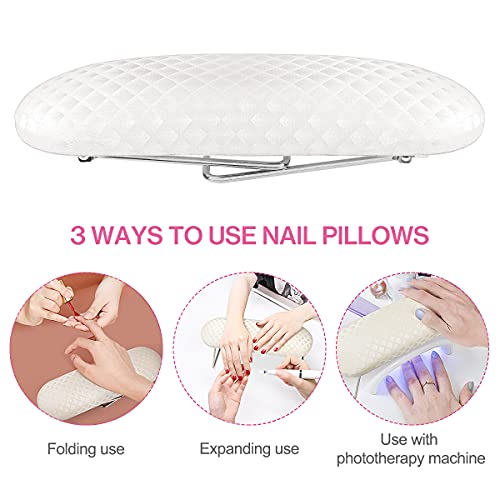 Poggiamano Per Unghie, Upkey Poggiamano, Cuscino per unghie in pelle in microfibra Cuscino per manicure con supporto per supporto Tavolo per unghie professionale pieghevole Scrivania unghie(Bianco)