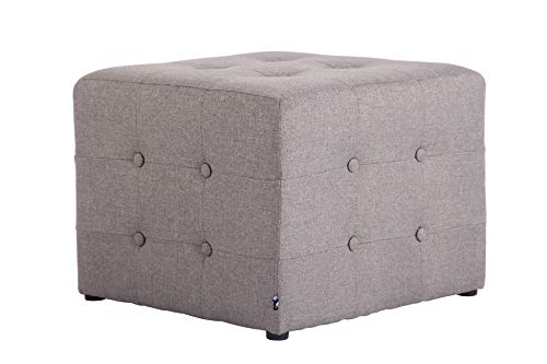 CLP Pouf Poggiapiedi Divano Salotto Melbourne in Stoffa I Puff Soggiorno Quadrato Design Chesterfield Morbido E Imbottito, Colore:Grigio