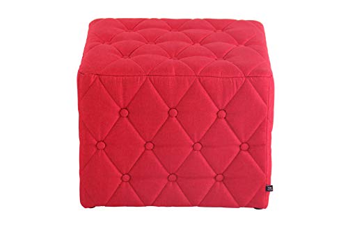 CLP Poggiapiedi Puff Quadrato Nashville in Stoffa E Legno I Pouf Divano Imbottito Design Chesterfield con Bottoni I H 37 CM, Colore:Rosso