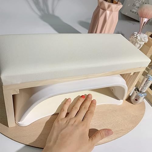 Poggiapolsi per manicure, poggiapolsi con supporto in legno, resistente, morbido cuscino per manicure in pelle PU (bianco)