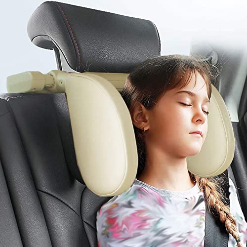 Poggiatesta Auto, Staccabile Supporto Protezione Cuscino Auto Collo poggiatesta laterale a doppia in Pelle PU con Memory Foam, Barra Scorrevole 180° Regolabile per Bambini Adulti (Color crema x2)