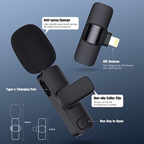 【TECNOLOGIA DI TRASMISSIONE A 2.4 GHZ】 Questo microphone wireless e‘ per iphone;