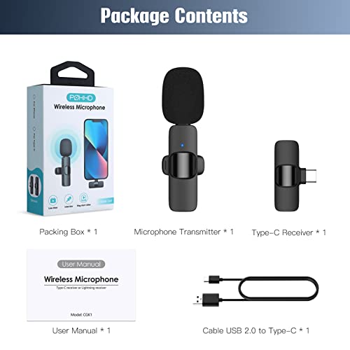 POHHD Microfono Lavalier Wireless Professionali Type C per Android, 2.4 GHZ Mini Microfoni Esterni Clip Plug and Play for Xiaomi/Huawei per You Tube Live Stream Vlogger (Type-C)