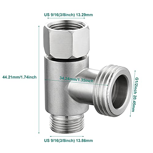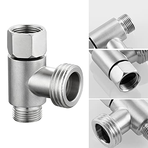 POHOVE Deviatore a 3 vie da 3/8" e 1/2" 3 vie adattatore a T in acciaio inox a forma di T per valvola angolare, braccio doccia, bidet, rubinetto spruzzatore (argento)
