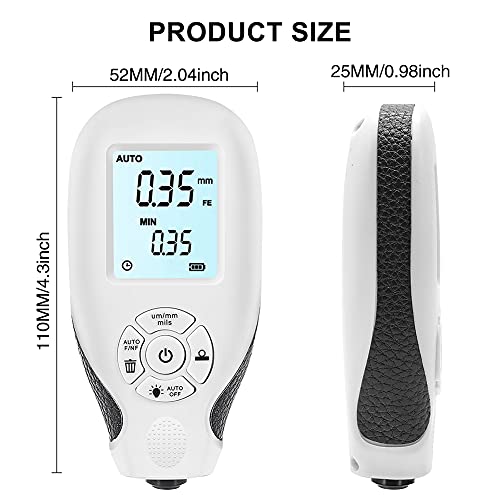 Un misuratore utile e versatile per molte applicazioni: ideale per controllare lo spessore della pittura dell'auto, come vernice per auto usata, verniciatura a polvere, alluminio anodizzato, accessori per il bagno, telai della bici, sedili dello stadio, capannoni da esterni, mobili, altalene, armadi e armadietti, computer, elettrodomestici e giocattoli.