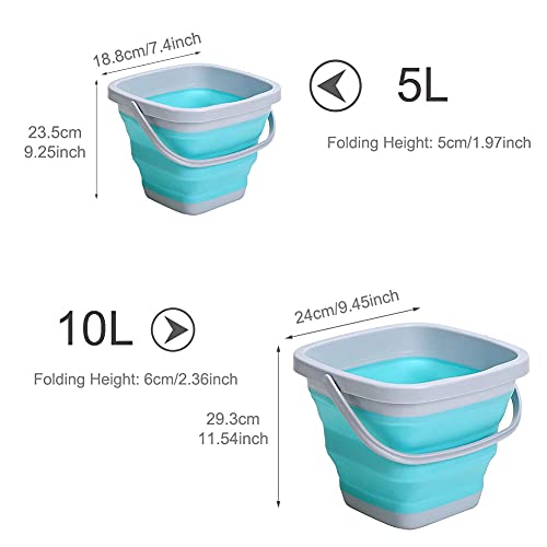 POHOVE - Secchio pieghevole da 5 l/10 l, con maniglia, pieghevole, salvaspazio per la pulizia, contenitore per acqua per giardinaggio, campeggio, pesca, sopravvivenza all'aperto, quadrato