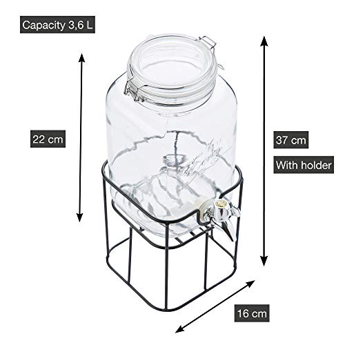 A'Domo Point-Virgule Dispenser per bevande con supporto in vetro e metallo 3,6 L