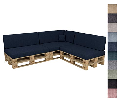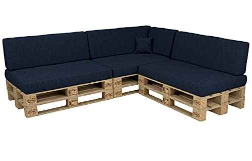 POKAR Set di Cuscini per Europallet da 8 Pezzi: 3X Sedile 120x80cm +3X Schienale 120x40cm +1x Schienale (Laterale) 60x40cm +1x Decorativo 40x40cm, per Divano da Giardino, Senza Pallet, Blu Scuro